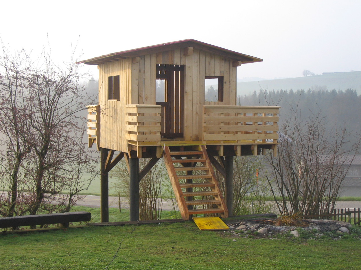 Ausgeführte Arbeiten: Erstellen des Baumhauses mit Unterstützung des Bauherrn